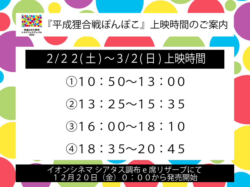 『平成狸合戦ぽんぽこ』上映会場のイオンシネマ シアタス調布など、対象のスポットで撮影した写真を「#調布シネフェス・平成狸合戦ぽんぽこ」のハッシュタグをつけてⅩで投稿していただくと、シネマフェスティバル『平成狸合戦ぽんぽこ』オリジナル木製カード(鶴亀和尚デザイン)が抽選で40名に当たります。