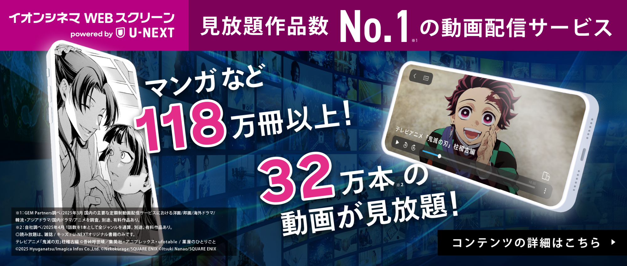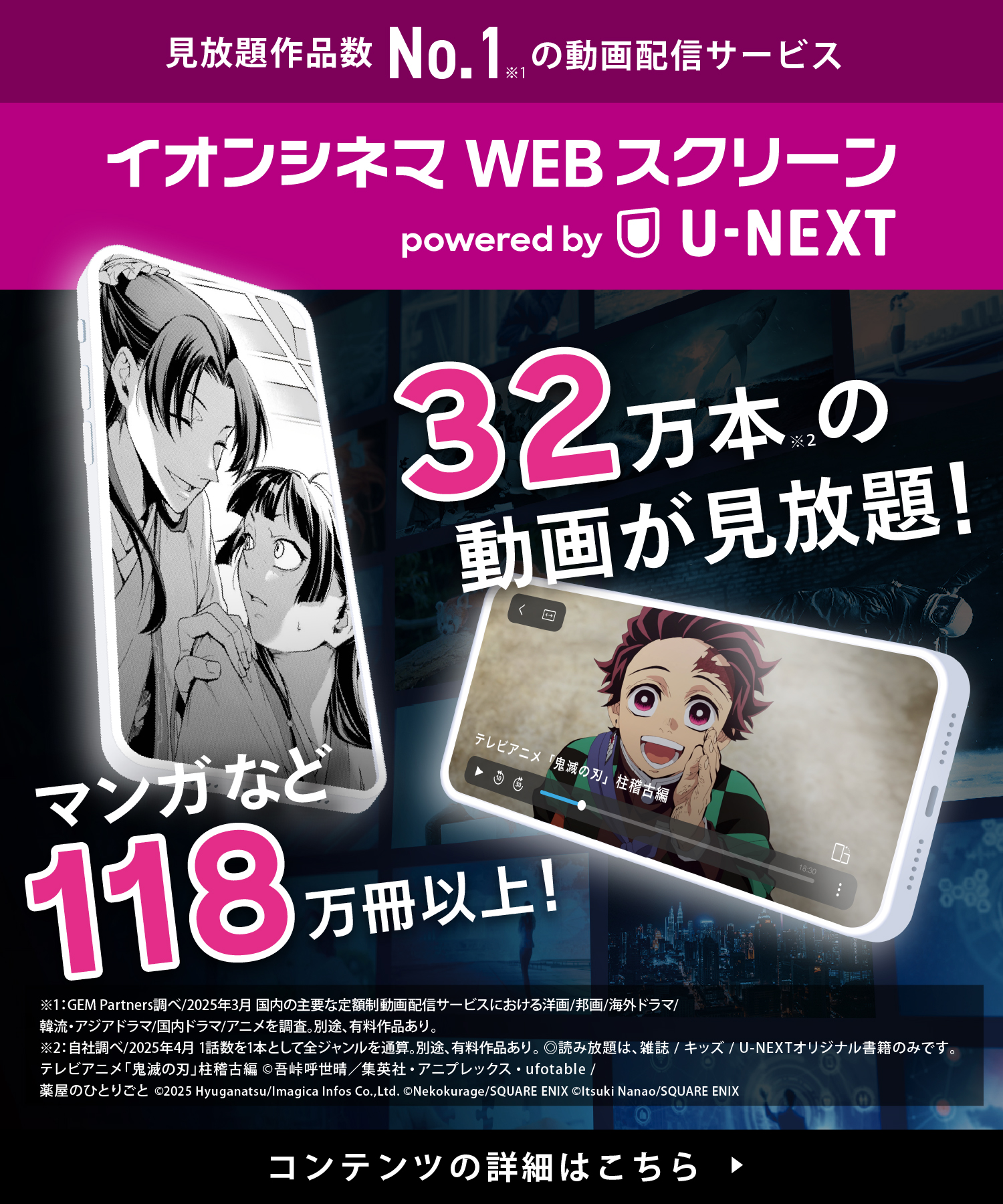 ※2 自社調べ/2025年4月 1話数を1本として全ジャンルを通算。別途、有料作品あり。