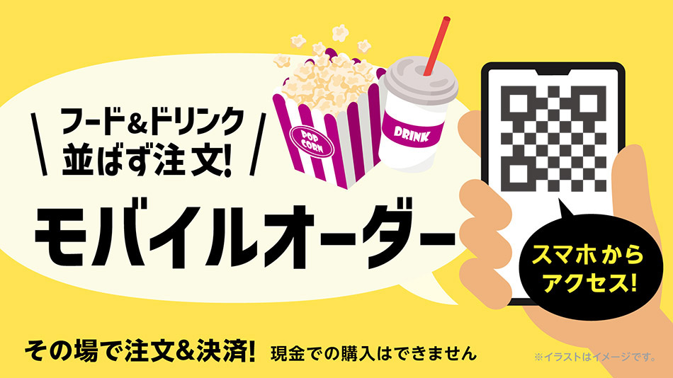 ※飲食売店の営業時間と、モバイルオーダーの注文受付時間は異なる場合がございます。受付状況は各劇場のモバイルオーダーページよりご確認いただけます。