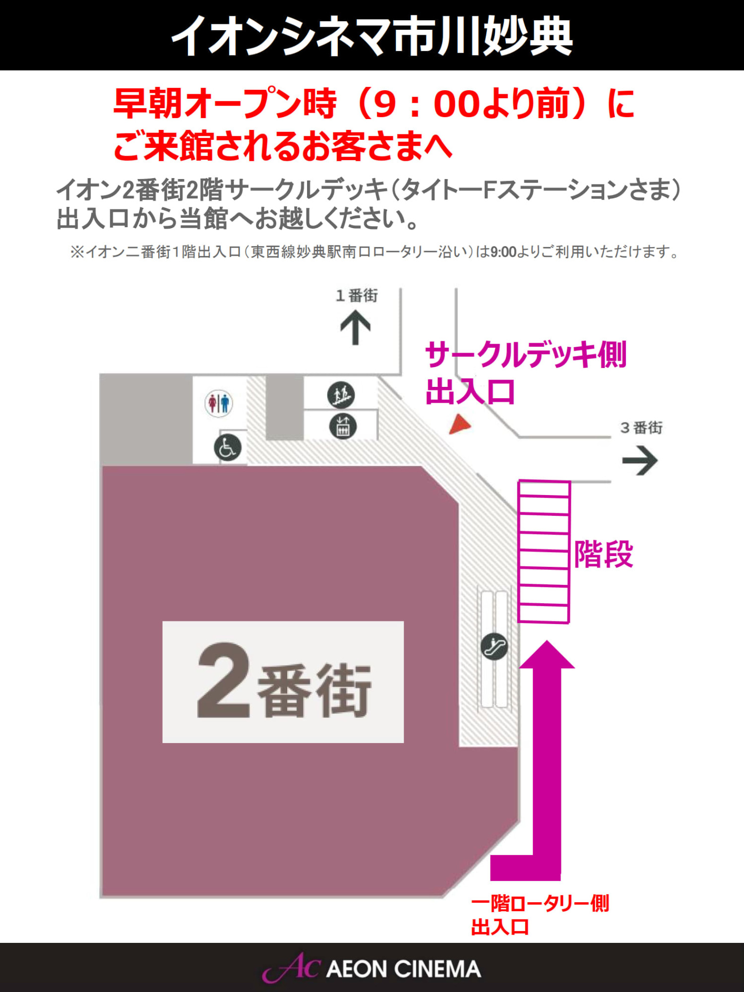 イオン市川妙典2番街1Fの出入口は、すべて9:00よりご利用いただけます。