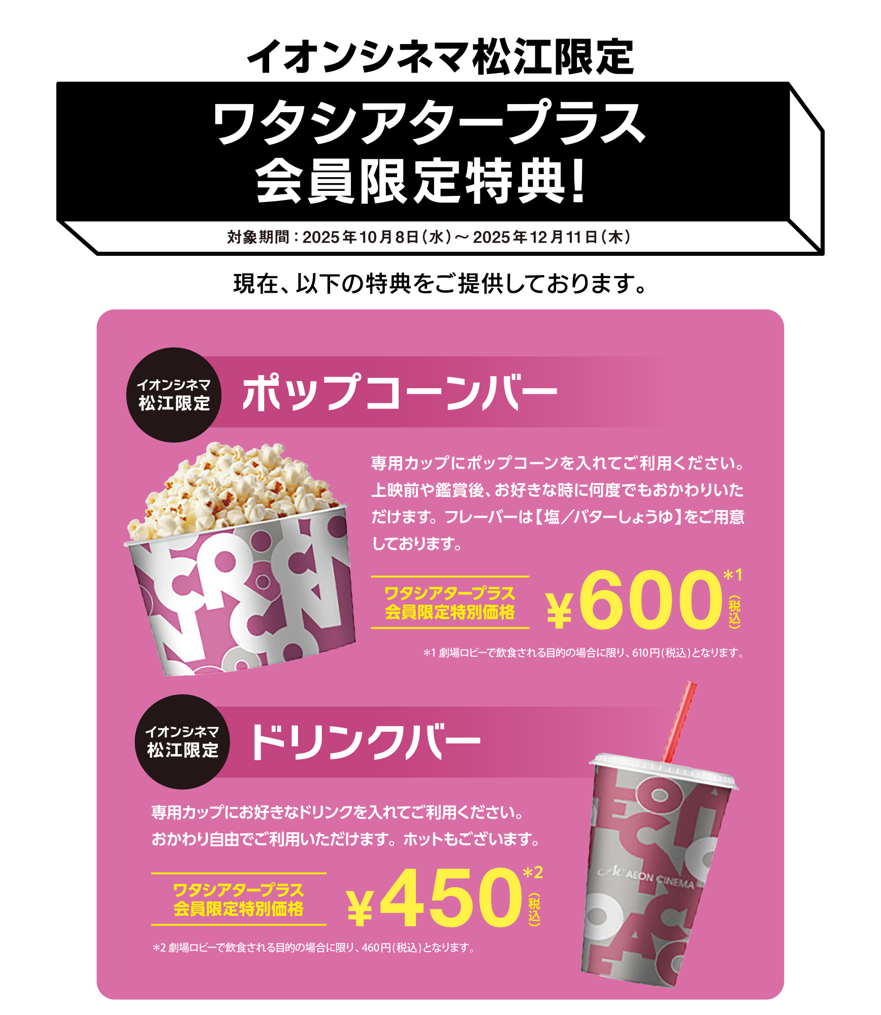 ・本特典のご利用は、ワタシアタープラス会員ご本人さまに限ります。
