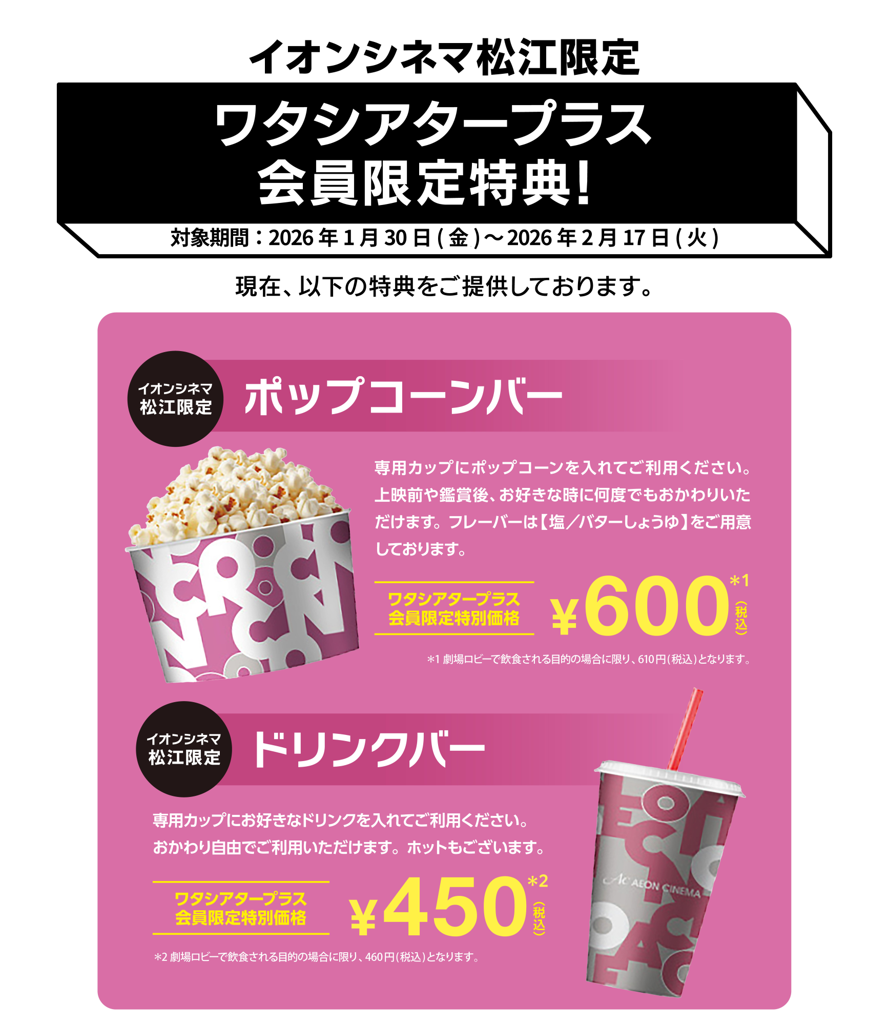 ・イオンシネマ松江は対象外です。