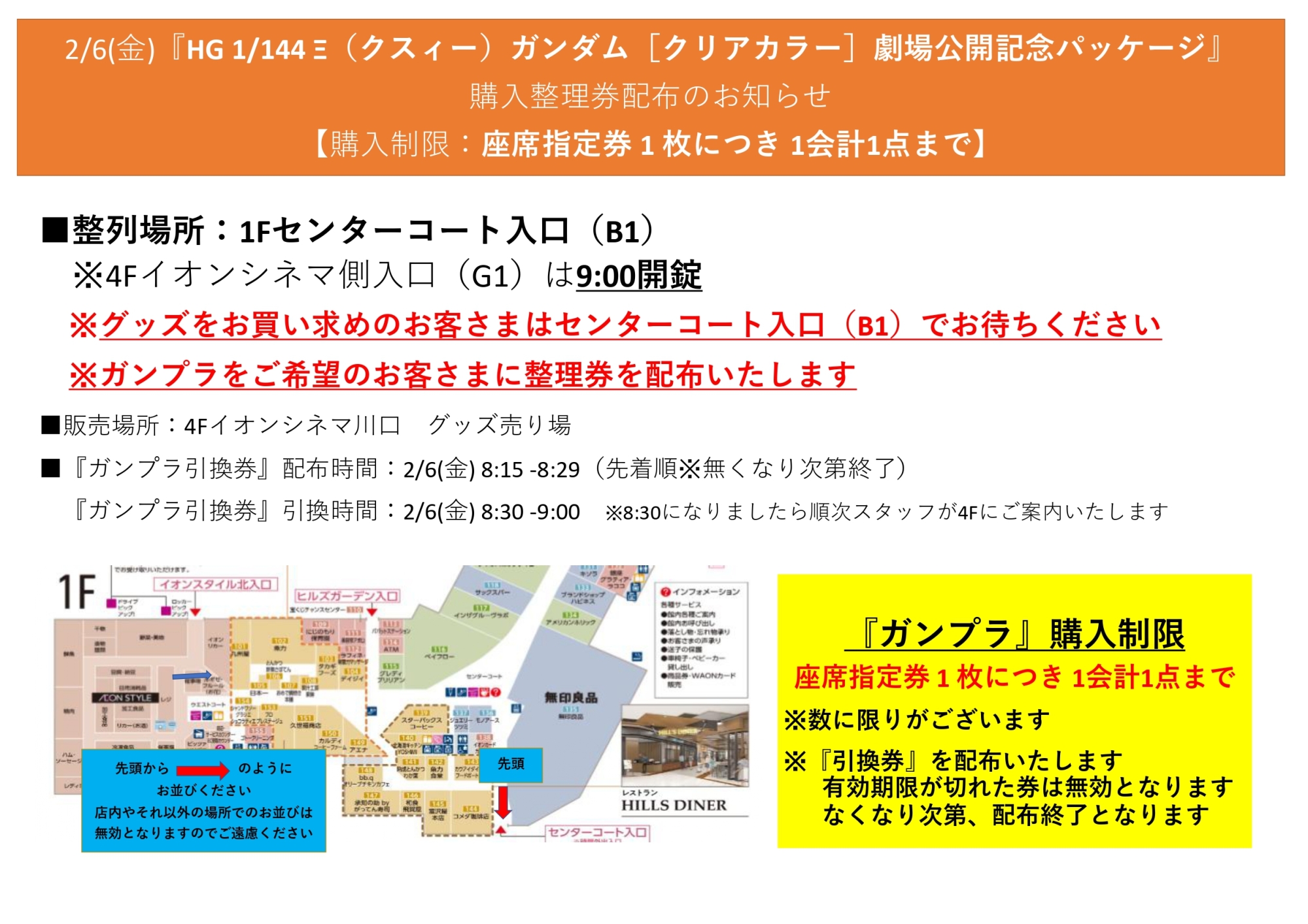 ■『ガンプラ引換券』配布時間:2/6(金) 8:15 -8:29(先着順※無くなり次第終了)