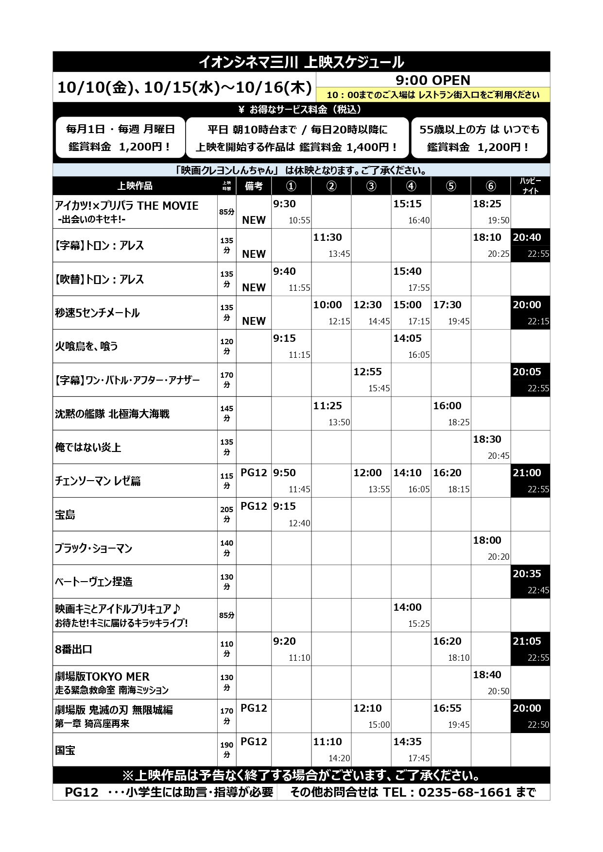 上記の時間は 他の入口からはイオンシネマにお越し頂けません。