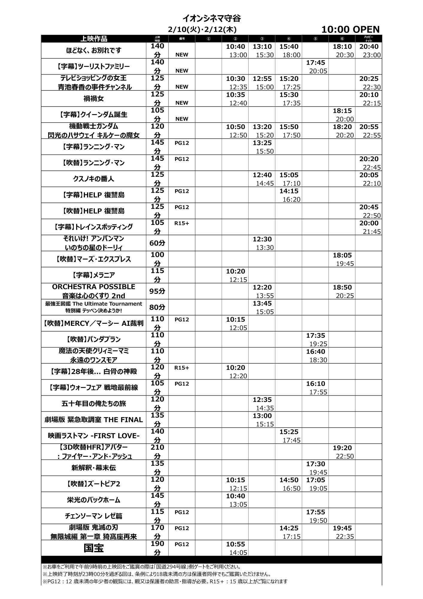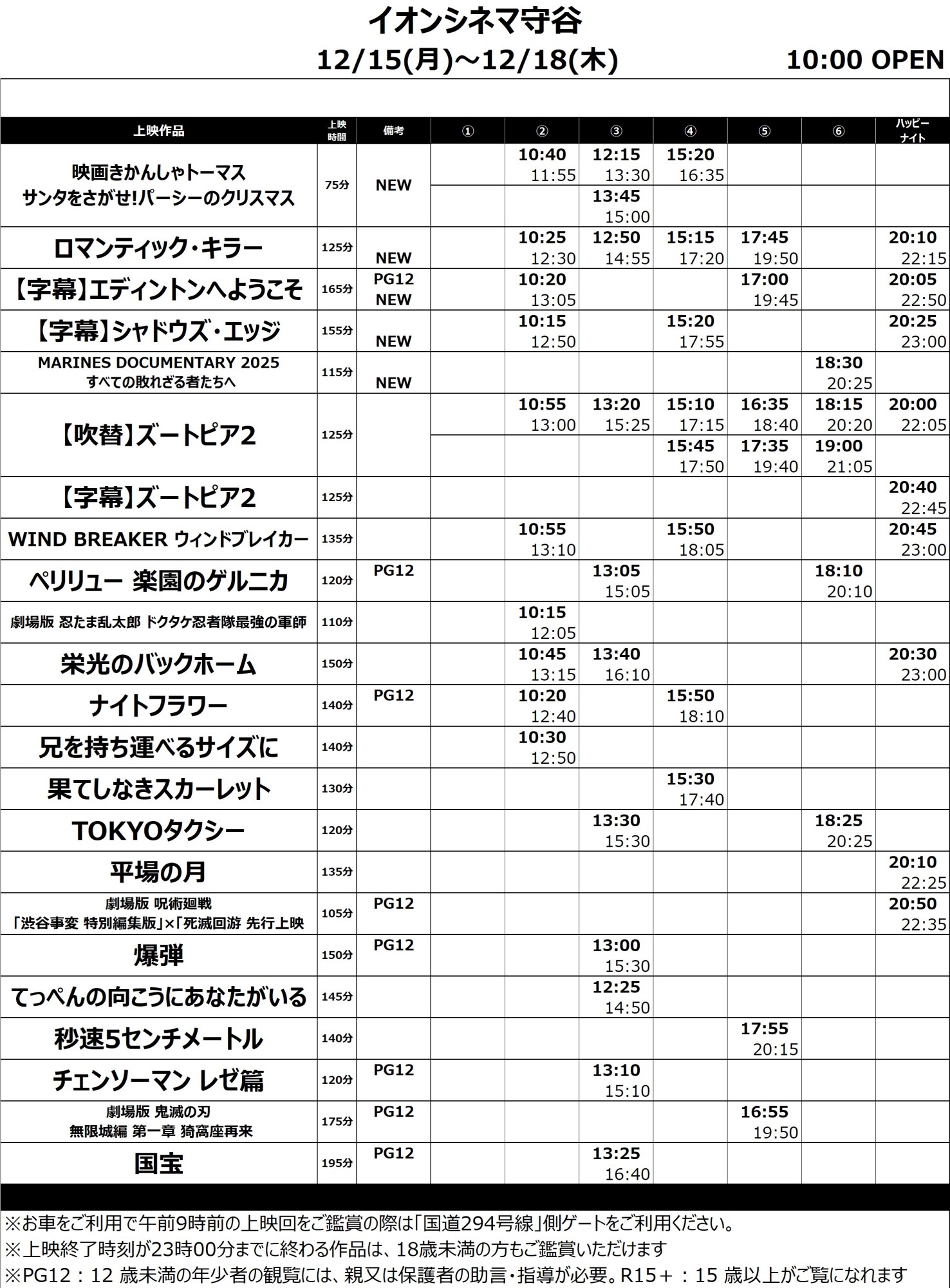 ■お日にちにより上映作品、上映時間が異なる場合がございます。ご鑑賞日のスケジュールをご覧ください。