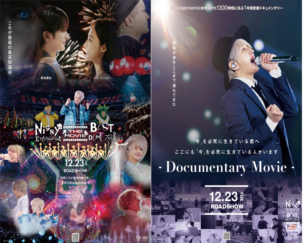 ①Nissy Entertainment Re:10th Anniversary Final” BEST DOME TOUR The Movie 舞台挨拶中継付 ②Nissy Documentary Movie Re:10th Anniversary Final BEST DOME TOUR 舞台挨拶中継付