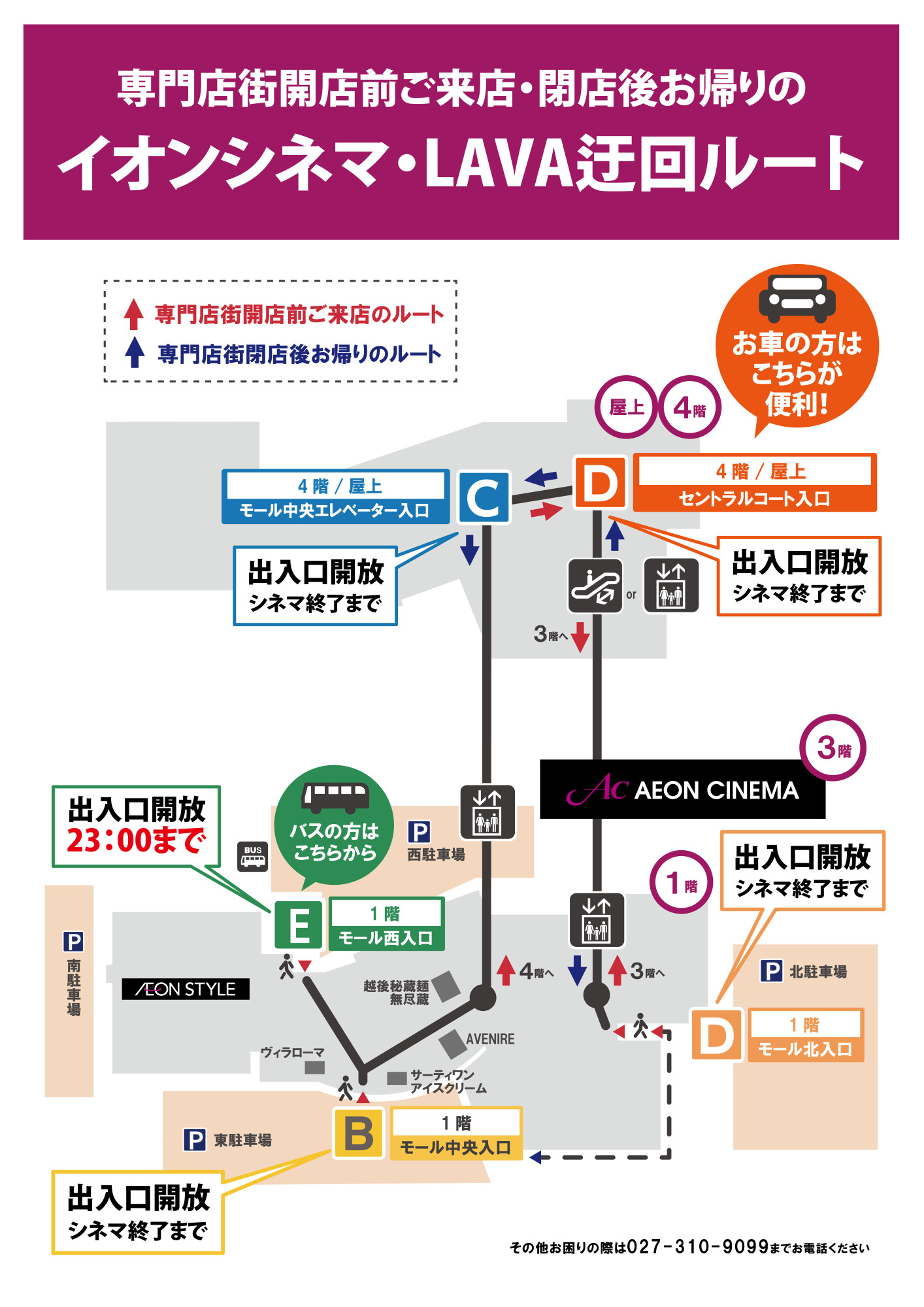 イオンモール高崎 営業時間外(午前10時前 ならびに レイトショー終了後)のシネマへの入退場口が限られております。ご来場前にご確認ください。