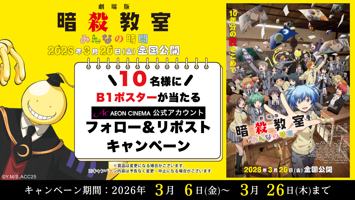 イオンシネマ公式Xをフォロー&リポストすると抽選でB1ポスターが当たるキャンペーン実施中!
