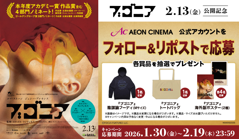 イオンシネマ公式Xをフォロー&リポストすると抽選で映画オリジナルグッズが当たるキャンペーン実施中!
