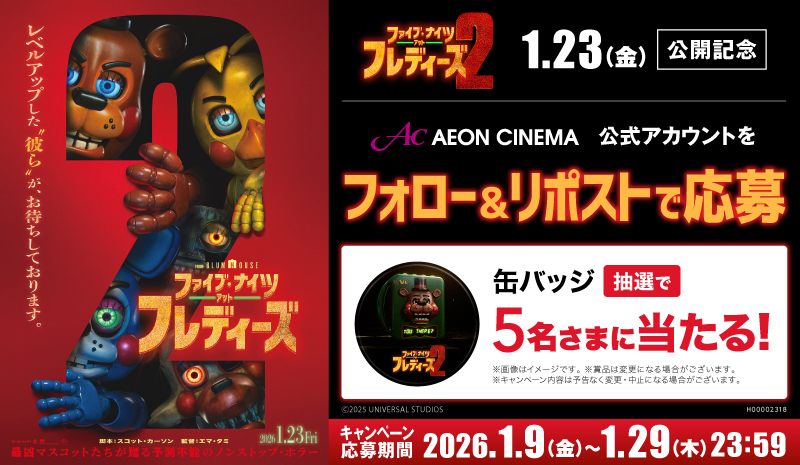 イオンシネマ公式Xをフォロー&リポストすると抽選で映画オリジナルグッズが当たるキャンペーン実施中!