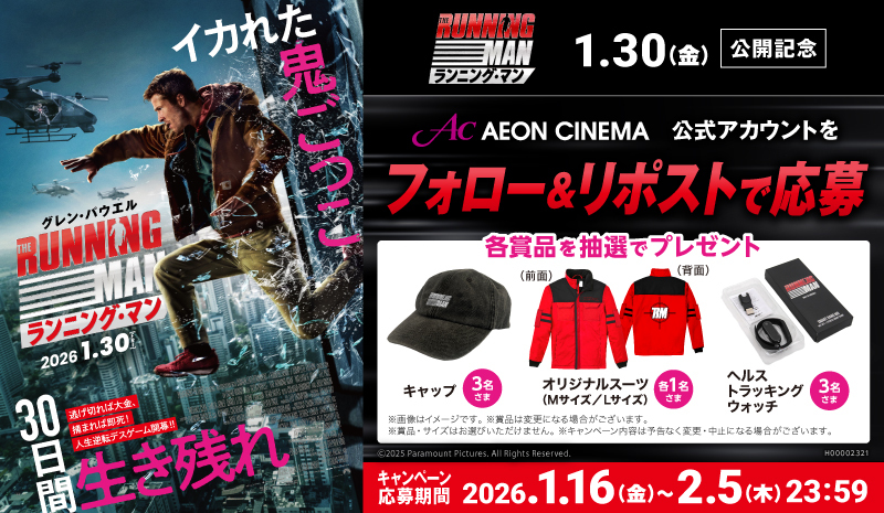イオンシネマ公式Xをフォロー&リポストすると抽選で映画オリジナルグッズが当たるキャンペーン実施中!
