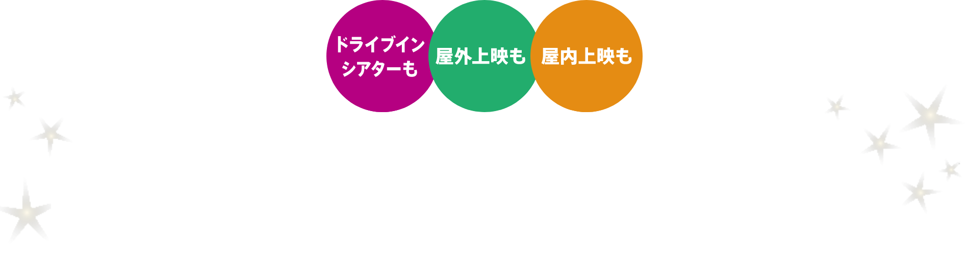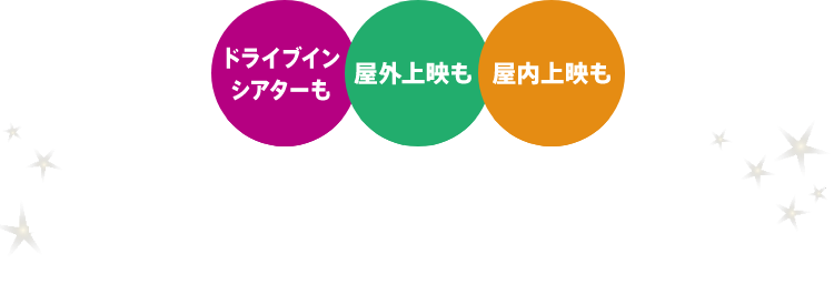 ドライブインシアターだけではなく、屋外イベントや屋内イベントでの上映も可能です。