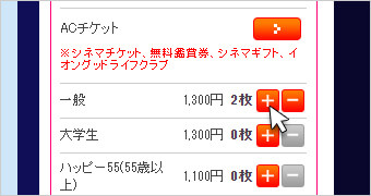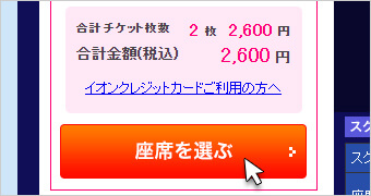 After selecting the ticket type and the number of tickets, click [座席を選ぶ] to select the seats you want.