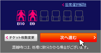 Note: You can click after you select the seats and the [次へ進む] button changes to orange.