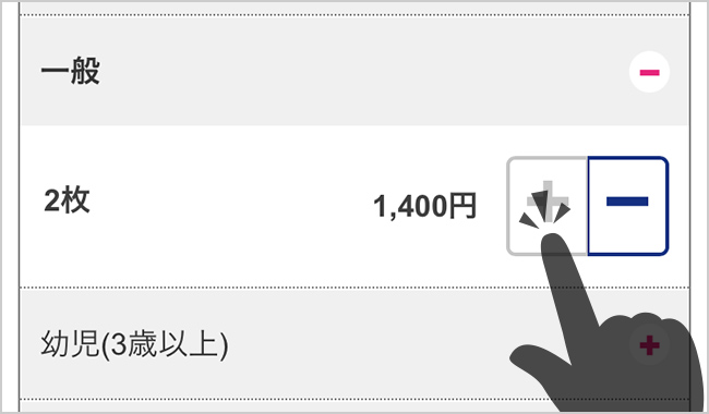 For example, to book two tickets of the same type, tap the [+] button twice.
