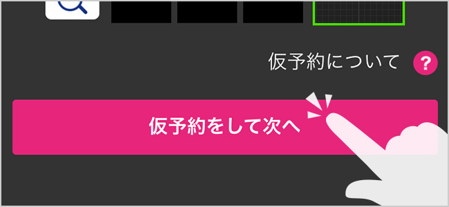 After selecting the seats for the number of booked tickets, tap [仮予約をして次へ].