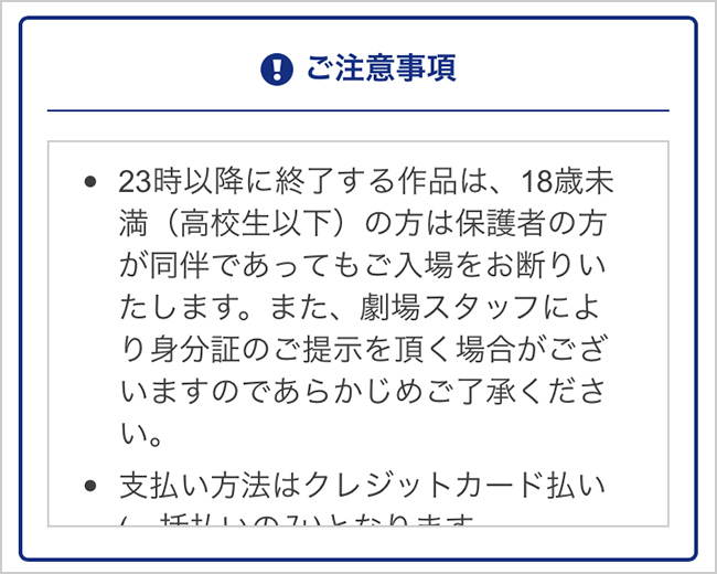 See the "e席リザーブ利用規約" in English See "Handling of personal information" in Japanese. See the conditions of use for “4DX” in English See the conditions of use for “MX4D” in English