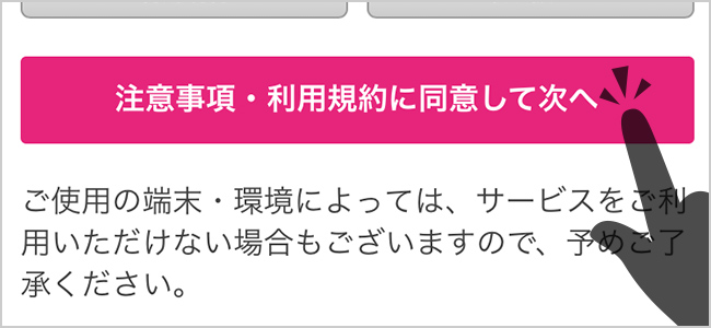 [注意事項・利用規約に同意して次へ]:I agree to the terms and conditions of use to go next