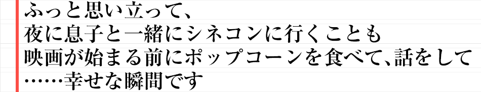 観ます。ロサンゼルスと行ったり来たりで、ロスにいる孫と一緒に観たいというのもあります。ふっと思い立って、夜に息子と一緒に行ったりします。大きい映画館で観るのが大事だと思います。