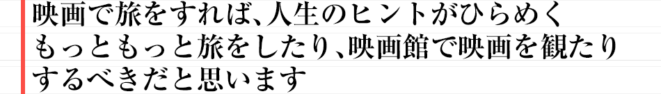 もっともっと旅をしたり、映画館で映画を観たりするべきだと思います。