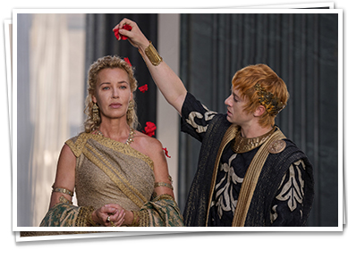 彼女のキャラクターに何を持ち込めたか、ですよね。ローマの黄金時代の最後を飾ったのが彼女の父親の時代で、野心や虚栄心によって権力を独占することのないようなチェック機能でしっかり納めた皇帝たちがいました。それを彼女は見ていた。でも今回のルッシラは、父がいなくなり、その後20年間、政治混乱、社会混乱、虚栄心、政治腐敗、残酷なことを目の当たりにしました。それらが横行して、権力のチェック機能が全部なくなっていた。なので、そういうことが分かっている人だということを全体で表現する必要があり、彼女が行動を起こしていることをしっかりと伝えたかったんです。なので皇帝や人前に出る時に、彼女は自分の姿勢でローマのあるべき姿を背負い、全身で伝えようとしていたんです。