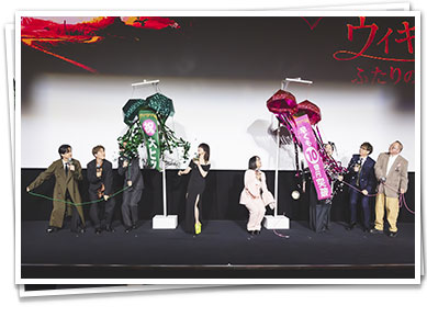 最後は大ヒットを祝して、グリーンとピンクで彩られたウィキッドカラーの特製くす玉が登場! 「『ウィキッド ふたりの魔女』大ヒット!」の掛け声でくす玉を勢いよく割ると、<祝・大ヒット‼><早くも10億円突破>とそれぞれ書かれた垂れ幕と共に入っていたのは、「スクリーンをご覧ください」と書かれたカード。ほどなくスクリーンには、本作のジョン・M・チュウ監督からのサプライズメッセージ映像が流れました。