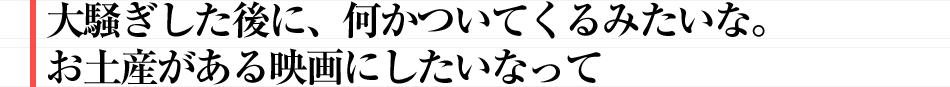 そこが楽しくて痛快だと思います。しかも大騒ぎした後に、何かついてくるみたいな。お土産がある映画にしたいなって。