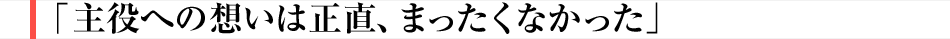 これまでも主役にこだわったことは一度もなかったですね。そもそも、そういう想いが育つ土壌がなかった。