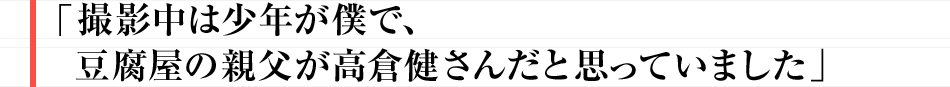 豆腐屋の親父が高倉健さんだと思っていました。高倉さんとの出会いは、僕には特別なことで、