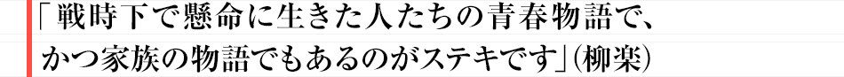 「ただ、戦時下で懸命に生きた人たちの青春物語、かつ家族の物語でもあるのがステキだな、と」