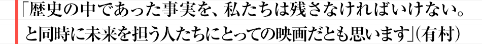 「今の“失われていく日常”とも共通するものがありますが、戦禍を生きた人たちは、もっともっと心に傷を負って生きてきた。それくらいのことが歴史の中であったという事実を、私たちは残さなければいけない。同時に未来のために自分たちがどういう行動や発言をしていくか、未来を担う人たちにとっての映画だとも思います」