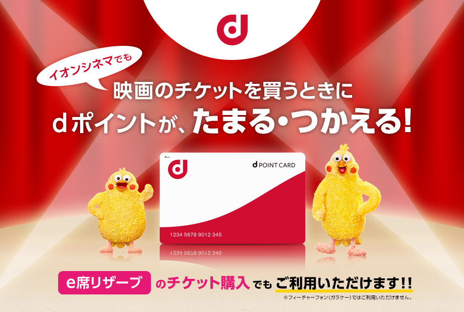 - 2017年6月6日より、オンラインチケット(e席リザーブ)ご利用時にもdポイントがたまる・つかえるようになりました。