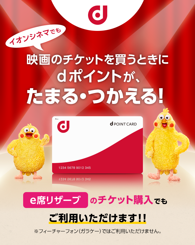 イオンシネマでdポイントが使えるのは、チケット売場、自動券売機、飲食・売店、シネマストア、オンラインチケット(e席リザーブ)での映画チケットの購入が対象となります。