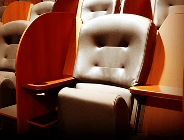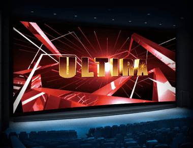 天井まで迫り左右の壁いっぱいに広がる大スクリーンと鮮明な映像、高音域・中音域・低音域を絶妙にコントロールした立体音響をお届けします。
