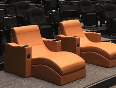 「電動リクライニング」により、足を伸ばしお客さまの最も居心地の良いスタイルでご鑑賞いただけます。