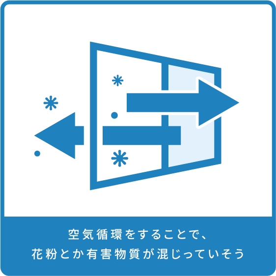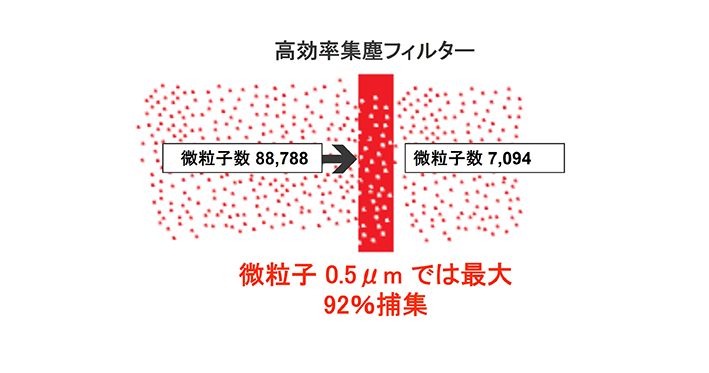 取り込んだ外気の微小のごみを高効率集塵フィルター「MERV13」で除去。PM2.5 や花粉といった、健康に影響のある物質の侵入を防ぎます。