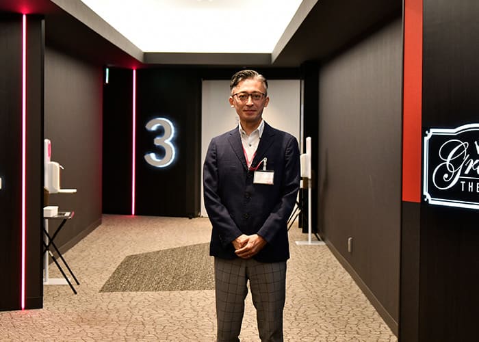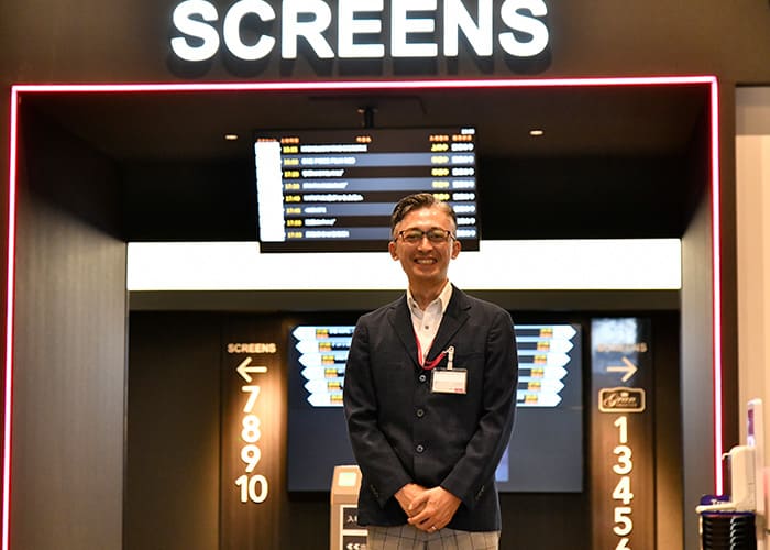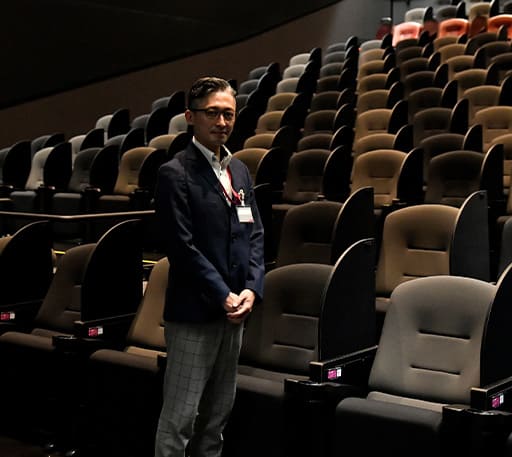 名古屋や北海道をはじめとする各地の映画館で働いた後、2021年にオープンした劇場の初代支配人に就任しました。開業前からさまざまな準備を重ねていましたが、時期的にちょうどコロナ禍に直面。グランドオープンの日程がなかなか決定しないといった多くの苦労があったものの、結果的にお客さまと時代のニーズをいち早く形にした劇場となりました。県内初の試みとして全座席間にパーテーションを設置しているほか、QRコードによる入場を導入するなど、非接触によってお客さまと従業員の双方に安心な環境が整っていることが特徴です。新しい映画館をゼロからつくり上げるのは、毎日が初めてのことの連続。既存の劇場ではそこにあるのが当たり前だったものを一つずつ整えて完成させるのは、エネルギーが求められる一大プロジェクトでした。そのぶんやりがいも大きく、オープン前日に灯が消えた売り場を見て「いよいよだ」と思ったときの気持ちはいまでも忘れられません。