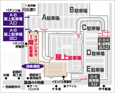 - レイトショー終了後はA・B屋上駐車場出口<川北通り側>をご利用ください。その他は閉鎖されております。