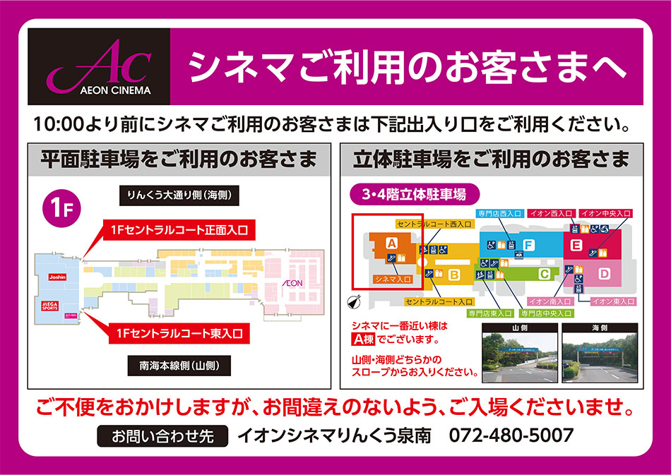 10:00以前にイオンシネマをご利用のお客さまは下記のいずれかの出入り口をご利用ください。