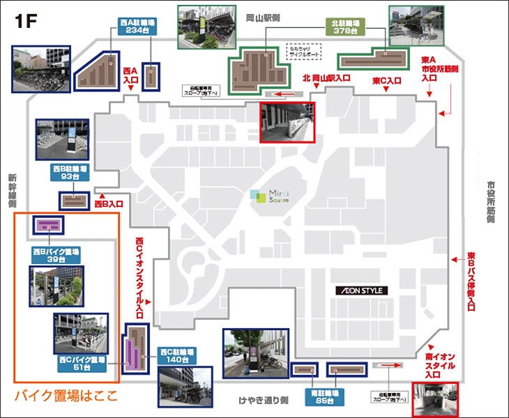イオンモール岡山の営業時間外(AM10:00前)に徒歩、自転車で「イオンシネマ」へお越しのお客さま
