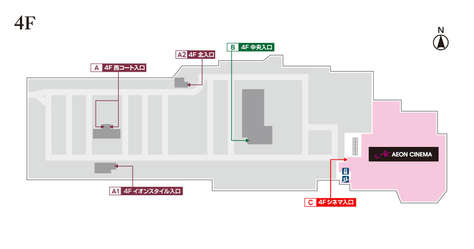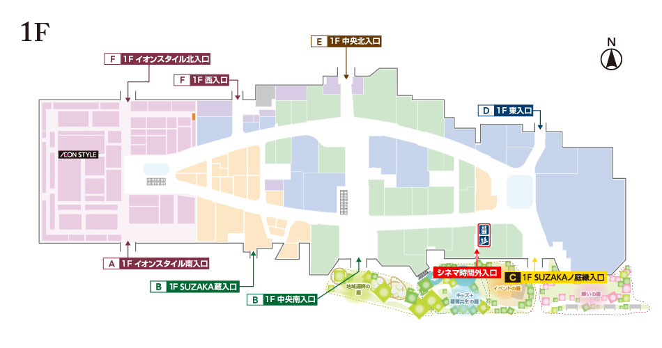 イオンモール須坂専門店街営業時間外にイオンシネマをご利用のお客さまは『1Fシネマ時間外入口』『屋上駐車場4Fシネマ入口』をご利用ください。