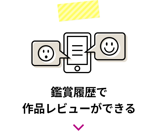 チケット購入時、ワタシアターのマイページへログインしてe席リザーブから購入いただくか、劇場自動券売機、チケット窓口でデジタル会員証を呈示してから購入いただくと、鑑賞された作品の履歴確認、星の数でのレビューをつけることができます。